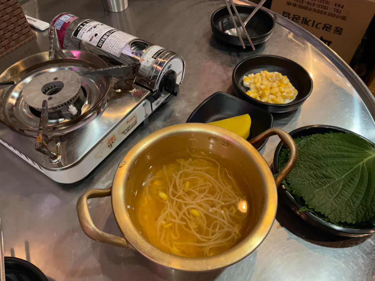 중불로 끓이다가 끓기 시작하면 약불로 끓이면 됩니다. 국물이 줄어들면 중간중간 콩나물국을 넣어주면,